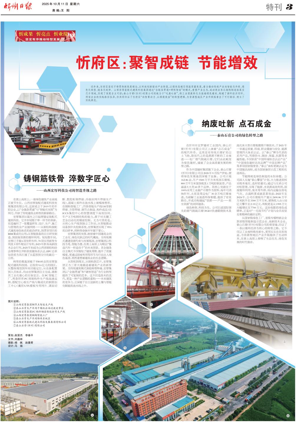 近年來,忻府區(qū)堅定不移貫徹新發(fā)展理念,以科技創(chuàng)新驅動產業(yè)轉型,以綠色低碳引領高質量發(fā)展,著力推動傳統(tǒng)產業(yè)向智能化升級、綠色化轉型、鏈條化延伸。山西宏厚裝配式建筑科技集團通過“全鏈條貫通+硬核智造”的模式,重塑產業(yè)生態(tài),成功將業(yè)務從鋼構制造拓展至芯片領域,實現(xiàn)了深度自主可控;泰山石膏(忻州)有限公司則致力于“吃廢吐新”,將工業(yè)固廢轉化為高端綠色建材,構建了循環(huán)經濟閉環(huán)。兩家企業(yè)的實踐路徑各異,但共同印證了忻府區(qū)“向智要動力、以綠提效益”的轉型邏輯,為資源型地區(qū)產業(yè)升級探索出了可行路徑、樹立了實踐典范。