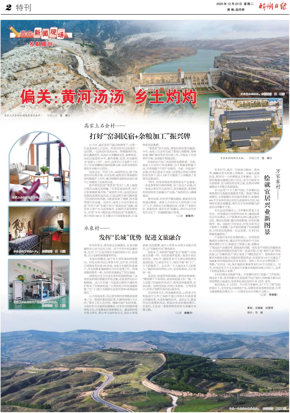 黃河湯湯,鄉(xiāng)土灼灼。今日的萬家寨村,在“千萬工程”經(jīng)驗(yàn)的指引下,光伏發(fā)電點(diǎn)亮綠色產(chǎn)業(yè),閑置農(nóng)房變身特色民宿,鄉(xiāng)賢力量凝聚起治理合力……正闊步走在鄉(xiāng)村振興之路上。