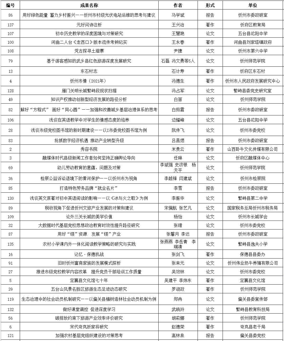 忻州市社會(huì)科學(xué)研究?jī)?yōu)秀成果三等獎(jiǎng)獲獎(jiǎng)名單(共35項(xiàng))(按姓氏筆畫(huà)排序)