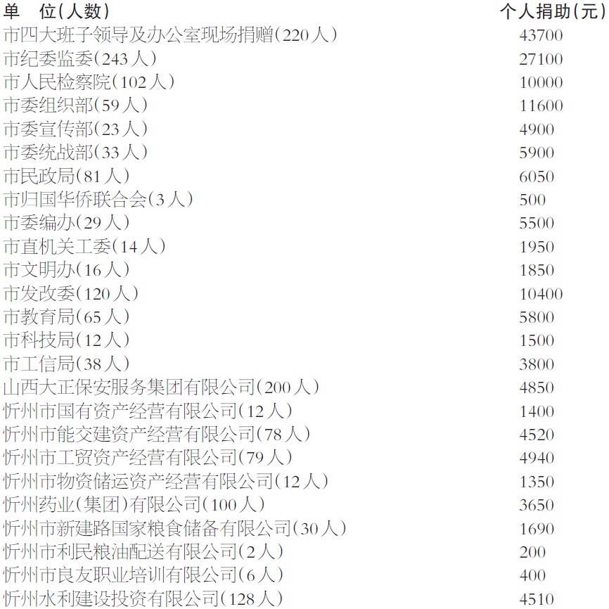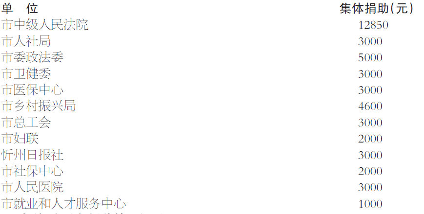 2023年11月10日,市委、市政府辦公室發(fā)出《關于開展“送溫暖、獻愛心”社會捐助活動的通知》,市四大班子領導和機關率先垂范,各縣(市、區(qū))、各單位高度重視,認真組織,廣大干部職工積極響應,“送溫暖、獻愛心”社會捐助活動有效開展。截至2024年4月底,市直133個單位組織干部職工參與捐助,共捐款83.37萬元,各縣(市、區(qū))接收捐款365.92萬元,合計捐款449.29萬元,為解決我市困難群眾的基本生活問題起到了積極作用。現將捐助情況公告如下(市直單位以捐助時間先后為序):