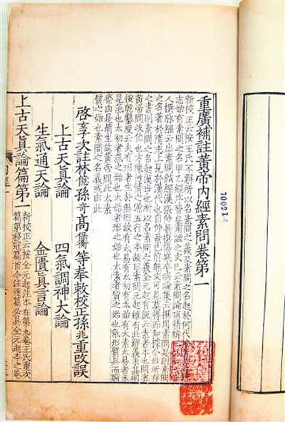 明嘉靖二十九年重廣補(bǔ)注黃帝內(nèi)經(jīng)素問(wèn)二十四卷,甘肅省圖書(shū)館藏?!饵S帝內(nèi)經(jīng)》提出對(duì)瘟疫要早發(fā)現(xiàn)早治療,治療后防止復(fù)發(fā)。