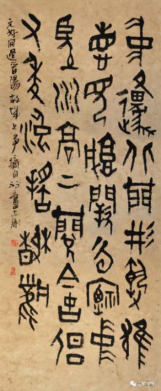 志剛先生因篆悟書,于書入篆,實際上就是兼顧了書寫的本質(zhì),找到了體現(xiàn)“漢字”本性的落點。對于一個書法家來講,除了解決書法的共性特征外,必須解決自己的個性特征才能名符其實,否則就很難有較高的成就。因為“篆”的綜合性和獨特表現(xiàn)性,正好可以給書寫者提供一種理解書法特質(zhì)的通道,那就是如何在更為有限的空間里呈現(xiàn)漢字審美的問題!在篆里,漢字固定的型,卻可以,而且必須根椐不同的語境有所改變才會呈現(xiàn)出藝術(shù)魅力。也就是先能“有”,然后再進入“無”,從“有”入“無”就可以得自由,如果能夠解決這一問題,并將之綜合體現(xiàn)在書法創(chuàng)作中自然就會有在非同凡響的面貌。