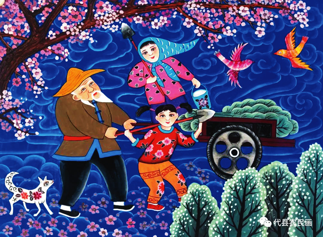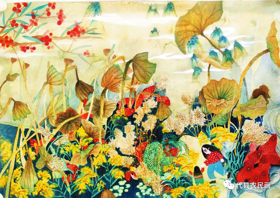 中國歷史文化名城代縣,文化底蘊深厚,民俗傳統(tǒng)技藝精巧別致,1988年和2008年先后被文化部授予“中國民間繪畫畫鄉(xiāng)”“中國民間文化藝術(shù)之鄉(xiāng)”。該縣的農(nóng)民畫早在上世紀80年代初就在全國產(chǎn)生過較大影響,之后經(jīng)歷了一段低迷期。近年來在代縣農(nóng)民畫促進會的推動之下,農(nóng)民畫又重新煥發(fā)出耀眼的光彩。先后涌現(xiàn)出多位畫家,其中尤以丁全愛、戴翠平、祁磊、賈永花、郎冬梅等18位女畫家組陣的雁門巾幗,在多年鉆研繪畫技巧的基礎(chǔ)上,創(chuàng)作出一幅幅特色鮮明、獨具匠心的畫作,成為閃耀三晉大地的矩陣,為傳承、弘揚雁門文化做出了新貢獻。