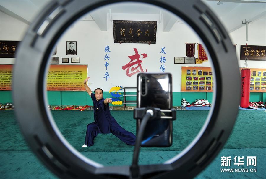 8月5日,石同鼎直播六合拳拳法。時(shí)值暑假,為減少聚集習(xí)武帶來(lái)的疫情風(fēng)險(xiǎn),同時(shí)豐富孩子們的暑期生活,六合拳第八代傳承人石同鼎在直播平臺(tái)開通了賬號(hào),每天帶領(lǐng)學(xué)生進(jìn)行網(wǎng)絡(luò)直播教學(xué)演示,通過“云端”傳承非遺文化。 今年59歲的石同鼎是泊頭六合拳第八代傳人,他自幼跟隨父親習(xí)武。2001年父親離世后,石同鼎便承擔(dān)起傳承六合拳的重任。2002年石同鼎建起六合武館,開始教徒弟習(xí)武練拳。 作為傳統(tǒng)武術(shù)中長(zhǎng)拳的一種,河北的泊頭六合拳有400余年歷史,被列入國(guó)家級(jí)非物質(zhì)文化遺產(chǎn)名錄。 “通過網(wǎng)上直播,更多的人可以了解六合拳、練習(xí)六合拳?!笔φf(shuō),他希望能把六合拳推向世界,傳得更遠(yuǎn)。新華社記者 牟宇 攝
