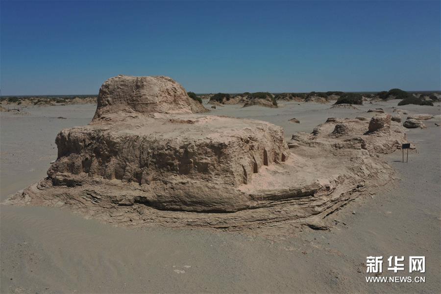這是米蘭遺址內(nèi)的佛寺遺址(7月24日攝,無人機(jī)照片)。新華社記者 宿傳義 攝