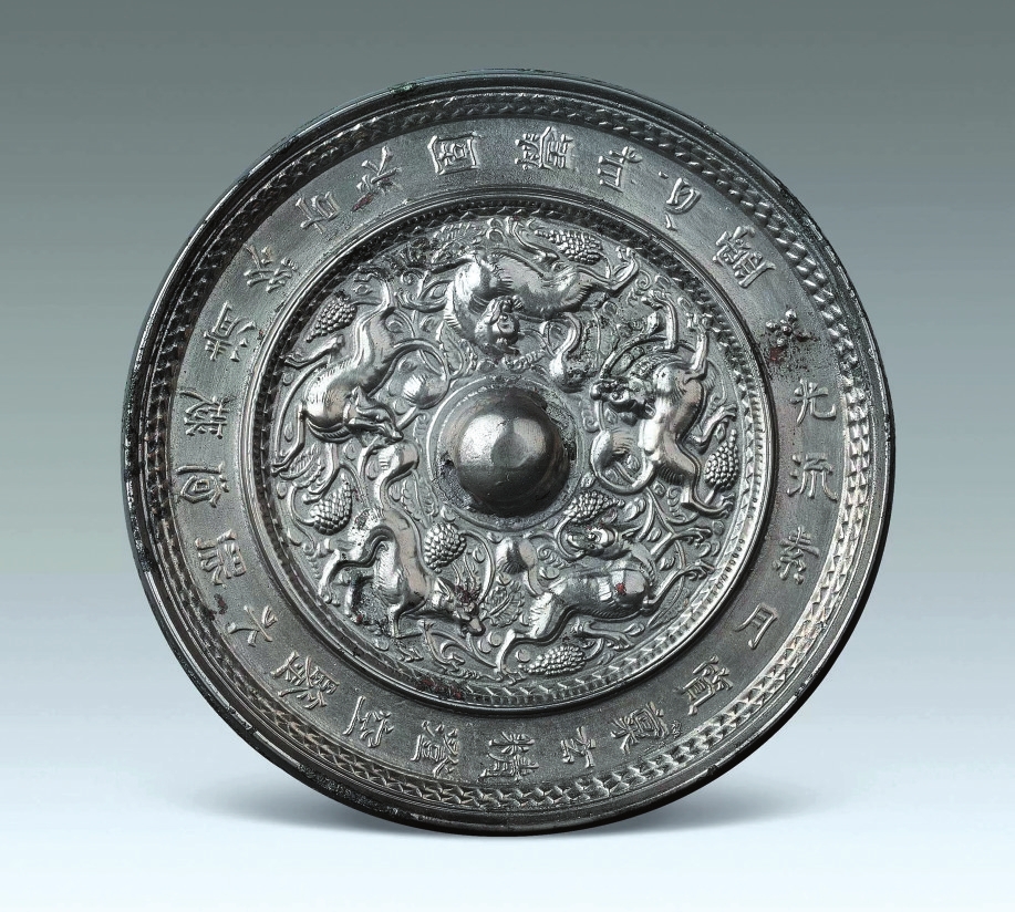 1966年陜西省西安市動力廠出土了一面光流素月瑞獸鏡,鏡銘為“光流素月,質(zhì)稟玄精。澄空鑒水,照回凝清。終古永固,瑩此心靈”。外圍銘文帶與內(nèi)區(qū)瑞獸紋相映成趣,展示出獨具特色的藝術美感。