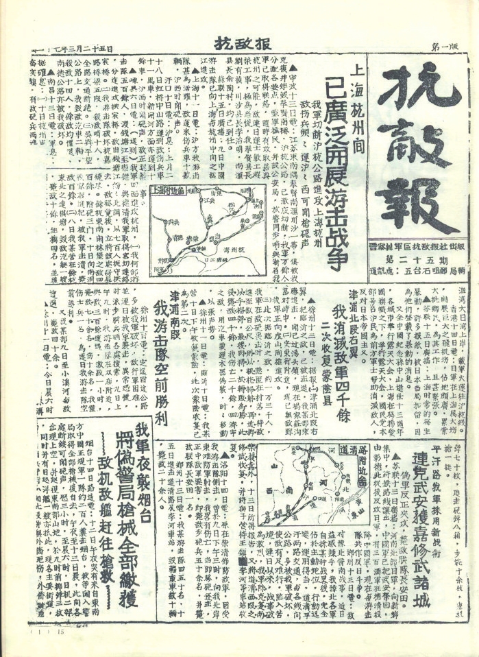 抗戰(zhàn)時(shí)期,忻州既是晉察冀、晉綏兩大根據(jù)地的中心腹地,也是抗戰(zhàn)初期全面抗敵的主戰(zhàn)場(chǎng)。忻州以其地理咽喉、戰(zhàn)役要沖、根據(jù)地核心和人民戰(zhàn)爭(zhēng)典范的多重角色,成為抗日戰(zhàn)爭(zhēng)中抵御日軍侵略、堅(jiān)持?jǐn)澈蠖窢?zhēng)的戰(zhàn)略支點(diǎn)之一。其歷史貢獻(xiàn)不僅體現(xiàn)在軍事上,更彰顯了中華民族不屈不撓的抗戰(zhàn)精神。隨著八路軍平型關(guān)大捷、雁門關(guān)伏擊戰(zhàn)、夜襲陽明堡飛機(jī)場(chǎng)等戰(zhàn)役勝利,1937年11月7日晉察冀軍區(qū)在五臺(tái)成立。12月11日,《抗敵報(bào)》誕生。1940年11月,《抗敵報(bào)》改名為《晉察冀日?qǐng)?bào)》,鄧拓任報(bào)社主任?!犊箶硤?bào)》最初在五臺(tái)石嘴村石印,后改鉛印。1938年1月,晉察冀邊區(qū)行政委員會(huì)在河北阜平成立,兩月后,邊區(qū)行政委員會(huì)遷駐五臺(tái)射虎川臺(tái)麓寺,報(bào)社、印刷廠分駐?;垅帧⒏蝮∈欧鹚?。1940年9月18日,晉綏分局機(jī)關(guān)報(bào)《抗戰(zhàn)日?qǐng)?bào)》,伴隨著隆隆炮火聲,在距離忻州不遠(yuǎn)的興縣艱難創(chuàng)刊。自此,那些戰(zhàn)地記者、通訊員甚或普通民眾,有名的,無名的,以個(gè)人名義,以集體名義,在極其艱苦的條件下,用滾燙筆尖秉筆直書,為我們珍存了那些發(fā)生在忻州大地上前仆后繼、可歌可泣的抗戰(zhàn)故事,也讓今天的人們一旦捧讀就會(huì)熱血沸騰。