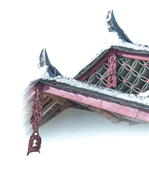 懸魚寓意豐富,蘊含著古人對平安、幸福的向往。懸魚有祈求建筑免遭火災(zāi)的寓意,木結(jié)構(gòu)古建筑怕火,而魚為水中之物,懸魚有水能克火之意。不僅是懸魚,過去古建筑的屋頂上,常裝飾與水有關(guān)的意象,如龍、鴟吻、鰲魚、水草等。懸魚也有祈求吉祥、富貴有余等寓意。魚與“余”“?!敝C音,象征富余、富裕、吉慶有余。魚多子,也體現(xiàn)了人們祈求多子多孫的愿望。有的懸魚下端雕兩條尾部相交的游魚,寓意雙魚喜慶。懸魚除了使用魚的形象,也會采用其他紋樣,如蝙蝠紋樣,取“?!敝猓惶一?、荷花、梅花、牡丹等紋樣,寓意吉祥、和美、富貴;花瓶紋樣,象征平安等。后來,懸魚不斷演化,有了卷云如意、飛禽等圖案,造型的式樣也日趨豐富。