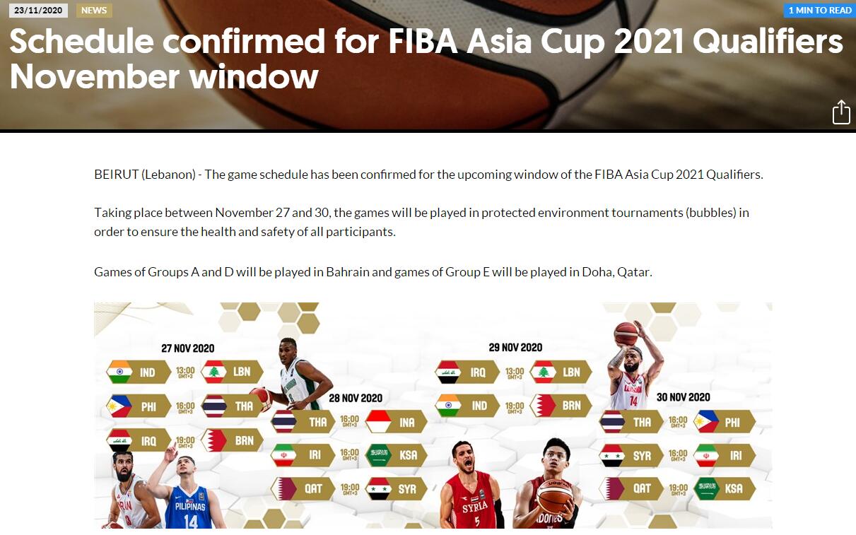 據(jù)介紹,由于相關(guān)防疫規(guī)定,有些國家和地區(qū)籃協(xié)所屬政府當(dāng)局不允許球隊(duì)進(jìn)行國際旅行,進(jìn)而導(dǎo)致有些球隊(duì)無法參加本窗口期比賽,國際籃聯(lián)被迫對(duì)亞洲杯預(yù)選賽11月窗口期賽程進(jìn)行調(diào)整。