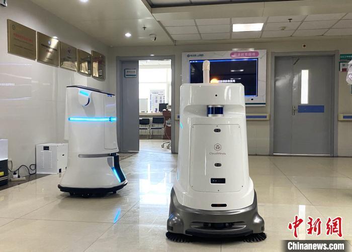 資料圖:銀川市第一人民醫(yī)院內,智能機器人正在工作。 楊迪 攝