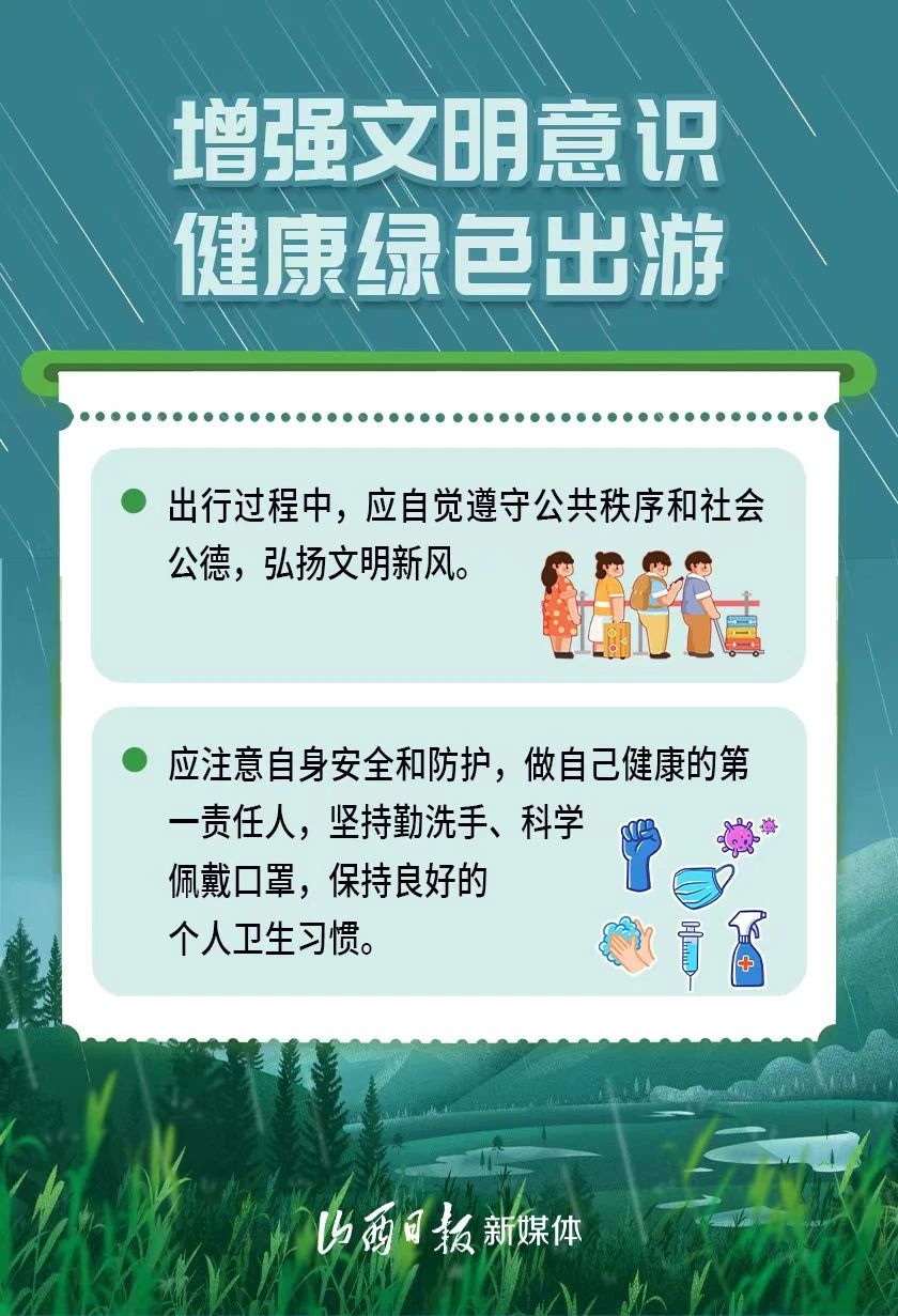 暑假,很多人開始規(guī)劃外出旅游行程。汛期,是強降雨、大風(fēng)、山洪等惡劣天氣多發(fā)期。暑假+汛期,省文旅廳發(fā)布出游提示,提醒廣大游客密切關(guān)注旅游安全,健康平安出游。