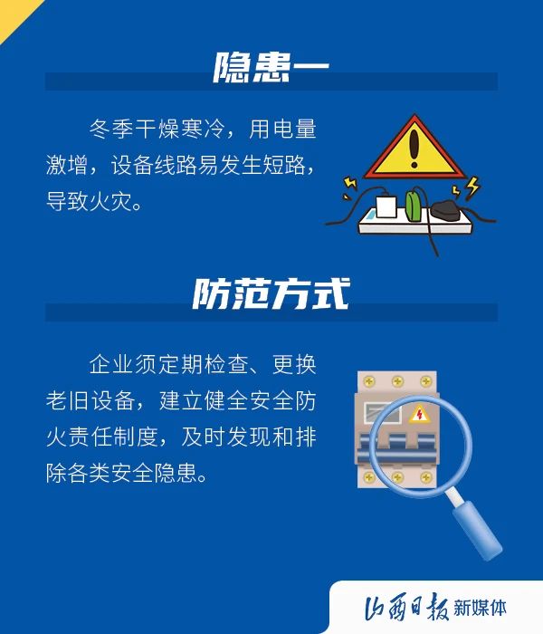 進入冬季,氣溫下降,晝夜溫差大,冷暖變化不規(guī)律,一些事故發(fā)生概率會因為季節(jié)性因素而升高,影響企業(yè)的安全生產(chǎn),下面這些隱患需注意。