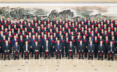 上午10時,習(xí)近平等來到京西賓館會議樓前廳,全場響起熱烈掌聲。習(xí)近平等走到代表們中間,同大家親切交流并合影留念。