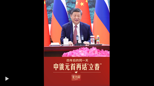 四年前的2月4日,習(xí)近平主席在會(huì)見普京總統(tǒng)時(shí)曾提到“立春”。四年后的同一天,中俄元首再話“立春”。作為中國(guó)傳統(tǒng)二十四節(jié)氣之首,立春象征著春回大地,代表著新的開始。再啟新程,中俄共同擘畫兩國(guó)關(guān)系新的藍(lán)圖。