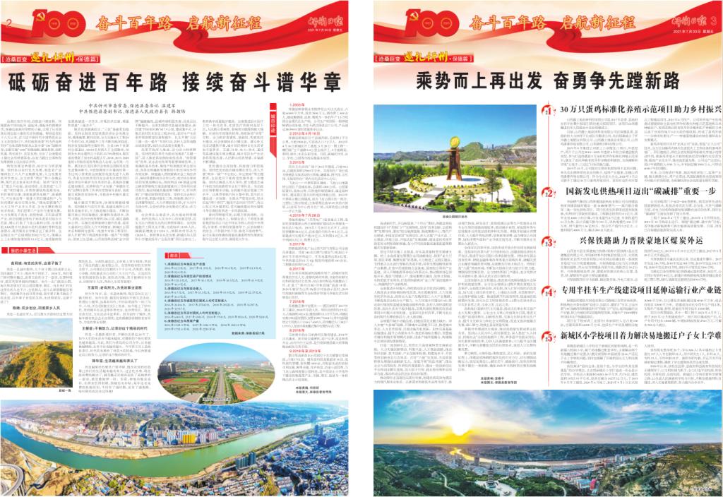 滄桑巨變百年間,啟航奮斗新征程。伴隨著新中國站起來、富起來、強起來的鏗鏘步伐,保德這座黃河岸畔的小城,實現(xiàn)了從貧困落后到全面小康的歷史性跨越。特別是黨的十八大以來,在習近平新時代中國特色社會主義思想指引下,我們按照省委“四為四高兩同步”總體思路和要求以及市委“336”戰(zhàn)略布局,創(chuàng)新實施“1245”發(fā)展戰(zhàn)略,解放思想、搶抓機遇,篤定前行、攻堅克難,交出了全面建成小康社會的保德答卷,在奮力蹚出全面轉(zhuǎn)型發(fā)展新路上邁出堅實步伐。