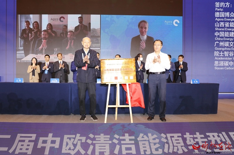 山西雙碳能源革命研究院由博眾能源轉(zhuǎn)型論壇、山西省能源研究會(huì)、中國(guó)能源建設(shè)集團(tuán)有限公司、廣州碳排放權(quán)交易所、院士智谷、思源碳中和科技(山西)有限公司六方協(xié)商,同意達(dá)成戰(zhàn)略合作伙伴關(guān)系,聯(lián)合支持山西雙碳能源革命研究院建設(shè),并以此為合作平臺(tái),合力推動(dòng)碳達(dá)峰碳中和、能源革命和產(chǎn)業(yè)科技創(chuàng)新發(fā)展。六方本著優(yōu)勢(shì)互補(bǔ)、互惠互利、深化合作、共同發(fā)展的原則,在戰(zhàn)略咨詢、科技合作成果轉(zhuǎn)換、人才引進(jìn)、共建科研基地等方面開展全方位深層次長(zhǎng)期合作,力爭(zhēng)創(chuàng)建一流科學(xué)研究機(jī)構(gòu)和組織。現(xiàn)場(chǎng)六方共同簽約合作備忘錄,名譽(yù)院長(zhǎng)宋振騏和省發(fā)改委二級(jí)巡視員霍喜福共同揭牌。