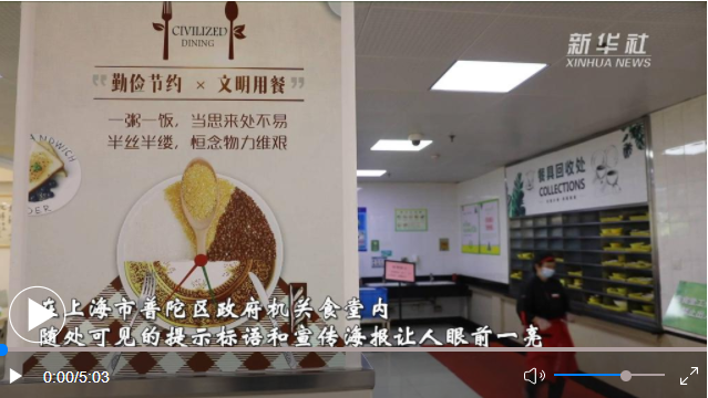 “點(diǎn)菜點(diǎn)少、不夠再添”“光盤(pán)行動(dòng)、從我做起”“厲行節(jié)約、反對(duì)浪費(fèi)”……在上海市普陀區(qū)政府機(jī)關(guān)食堂內(nèi),隨處可見(jiàn)的提示標(biāo)語(yǔ)和宣傳海報(bào)讓人眼前一亮。