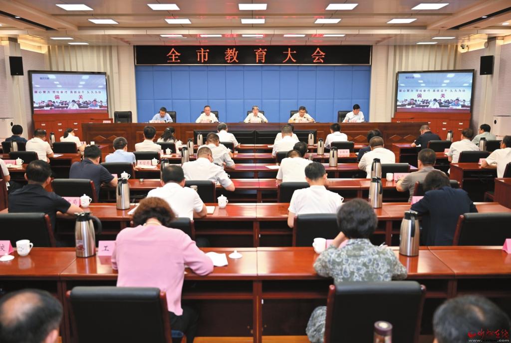 會議充分肯定近年來全市教育事業(yè)發(fā)展取得的成績,對教育強(qiáng)市建設(shè)各項(xiàng)重點(diǎn)工作作出全面部署。會議指出,要堅(jiān)持不懈用習(xí)近平新時(shí)代中國特色社會主義思想鑄魂育人,一體化推進(jìn)大中小學(xué)思想政治教育,培養(yǎng)德智體美勞全面發(fā)展的社會主義建設(shè)者和接班人。要堅(jiān)持以人民為中心發(fā)展教育,推動義務(wù)教育優(yōu)質(zhì)均衡發(fā)展,促進(jìn)學(xué)前教育普及普惠和高中階段學(xué)校多樣化發(fā)展,前瞻性優(yōu)化區(qū)域教育資源配置,持續(xù)鞏固“雙減”成果,不斷提升基礎(chǔ)教育服務(wù)質(zhì)量。要統(tǒng)籌實(shí)施科教興市、人才強(qiáng)市、創(chuàng)新驅(qū)動發(fā)展戰(zhàn)略,加快構(gòu)建現(xiàn)代職業(yè)教育體系,增強(qiáng)高等教育綜合實(shí)力,培育壯大科技創(chuàng)新力量,不斷塑造高質(zhì)量發(fā)展新動能新優(yōu)勢。要強(qiáng)化師德師風(fēng)建設(shè),優(yōu)化完善教師管理體制,厚植尊師重教社會風(fēng)尚,大力培養(yǎng)鍛造一支師德高尚、業(yè)務(wù)精湛、結(jié)構(gòu)合理、充滿活力的高素質(zhì)專業(yè)化教師隊(duì)伍。要進(jìn)一步深化教育領(lǐng)域綜合改革,進(jìn)一步擴(kuò)大教育開放合作交流,進(jìn)一步建設(shè)全民終身學(xué)習(xí)的學(xué)習(xí)型社會,充分激發(fā)教育高質(zhì)量發(fā)展的生機(jī)活力。