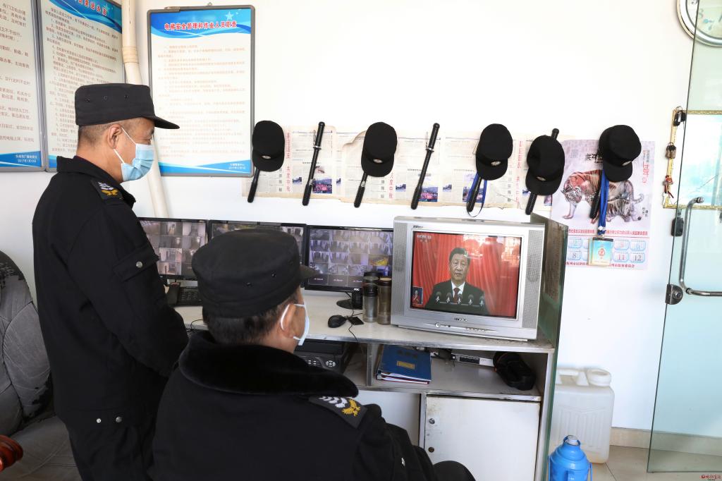 廣電大樓保安觀看大會(huì)。范濤 攝 在忻府區(qū)秀容街道南關(guān)社區(qū),社區(qū)干部和居民自發(fā)來(lái)到社區(qū)活動(dòng)室,圍坐在一起,認(rèn)真觀看開(kāi)幕會(huì)實(shí)況,幸福的笑容洋溢在臉上。工作人員楊琳說(shuō):“太興奮了?;厥走^(guò)去五年,感到無(wú)比自豪。接下來(lái),將進(jìn)一步貫徹落實(shí)黨的二十大精神,繼續(xù)堅(jiān)持理論學(xué)習(xí)與基層實(shí)踐相結(jié)合,將社區(qū)群眾在日常生活中的‘急難愁盼’放在心上,多為百姓辦實(shí)事、辦好事,在平凡的崗位上書(shū)寫(xiě)不平凡的工作業(yè)績(jī)?!?/p>