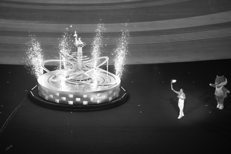當晚,“塞上祥云托起的巨幅畫卷”在高科技下展現(xiàn)了90分鐘的精彩,呈現(xiàn)了石窟文化、絲路文化、長城文化、黃河文化、太行文化、紅色文化等山西深厚的歷史文化底蘊。開幕式接近尾聲,全場變暗,6位火炬手在一束追光中接連完成了火炬?zhèn)鬟f。