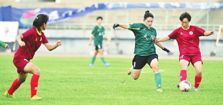 8月10日下午,第十六屆省運(yùn)會(huì)女子甲組足球比賽落下帷幕,太原、大同、晉中分獲前三名。第五輪場序大同隊(duì)與呂梁隊(duì)的比賽中,隨著裁判一聲哨響,比賽正式打響。雙方球員在場上奮力奔跑,拼搶防守,場下的觀眾為球員們加油吶喊,現(xiàn)場氣氛火熱。大同隊(duì)最終以3∶0戰(zhàn)勝對手,奪得第二名。
