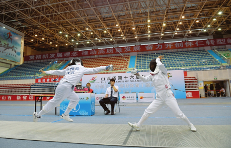 8月16日,省第十六屆運動會擊劍比賽舉行,吸引了來自全省7支代表隊的124名運動員參賽。本報記者阮洋攝