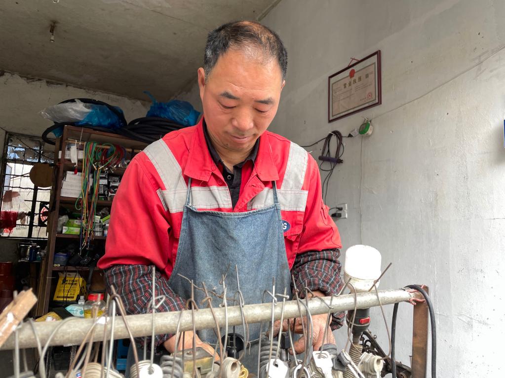 在胡師傅修車鋪內(nèi),一張個體戶營業(yè)執(zhí)照格外醒目。 新華社記者 程思琪攝