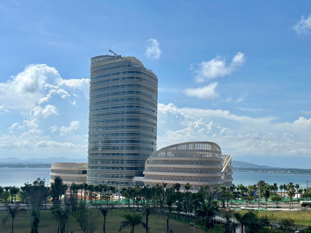6月27日在海南陵水拍攝的國際教育創(chuàng)新試驗區(qū)園區(qū)內(nèi)的中國傳媒大學(xué)考文垂學(xué)院教學(xué)樓。新華社記者 劉勇貞 攝