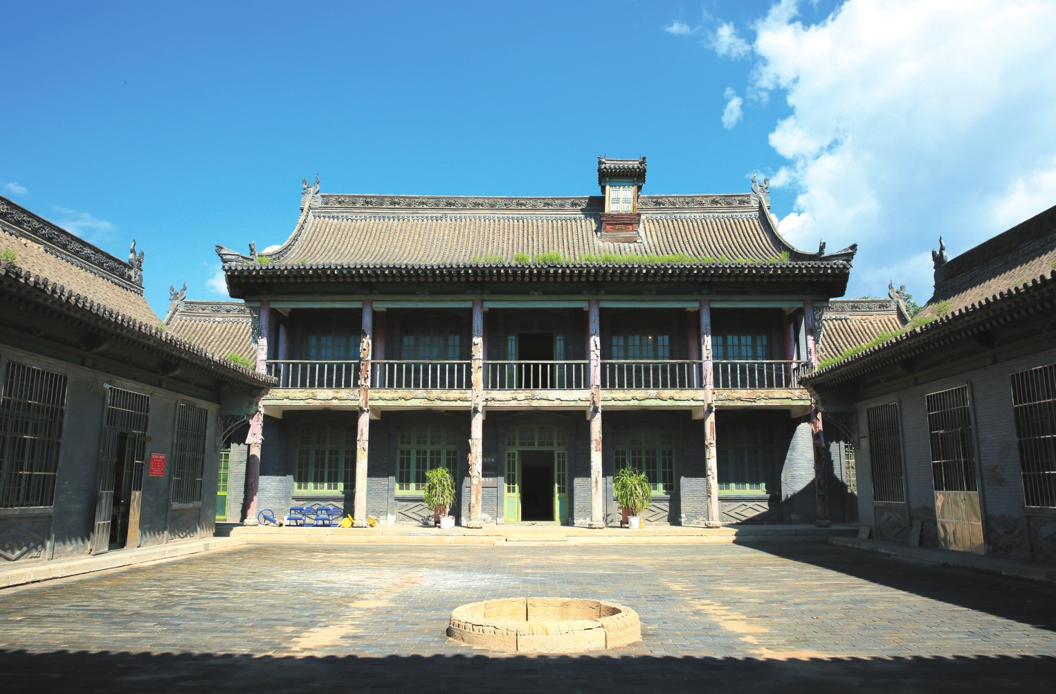 周玳官邸位于代縣上館鎮(zhèn)東南街村周家巷11號,建于1930年,坐北朝南,占地面積3996平方米。二進(jìn)院落布局,中軸線上建有南房、過廳和正房(二層為藏書樓),兩側(cè)為門樓、東西配房及耳房,均為硬山頂磚木結(jié)構(gòu)。院西設(shè)花園,建六角亭1座。