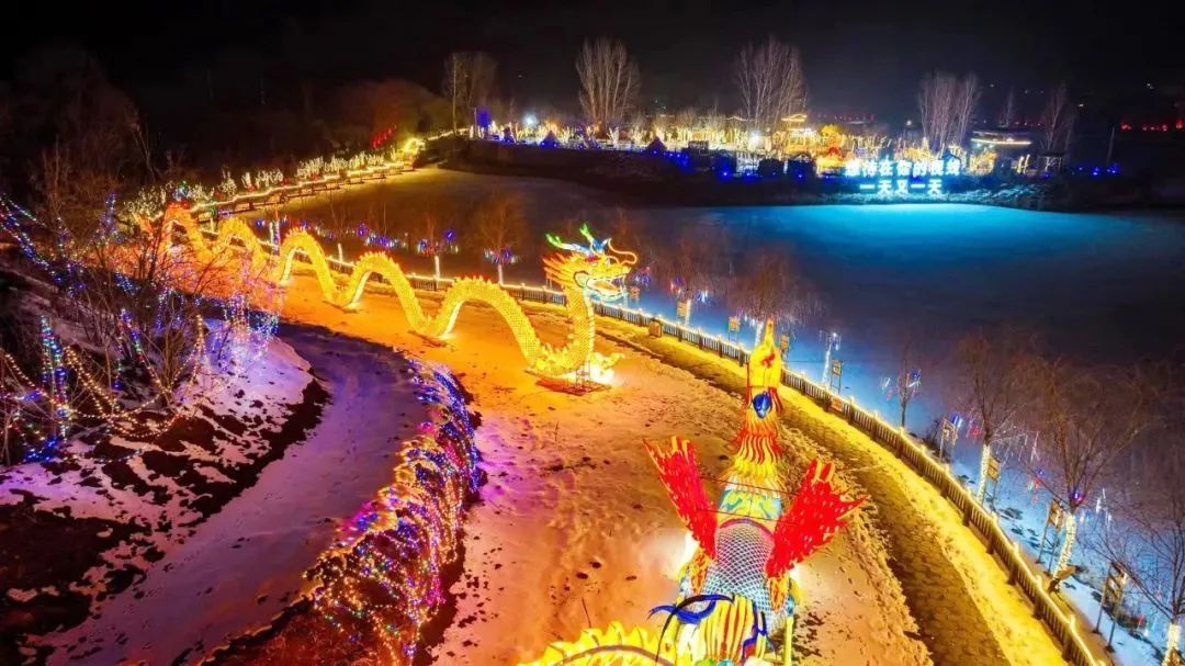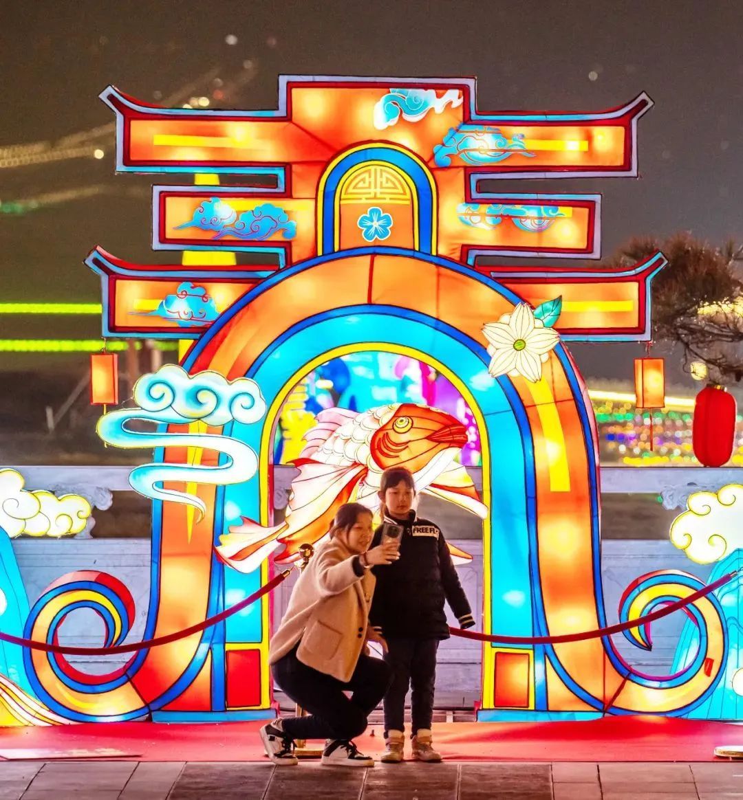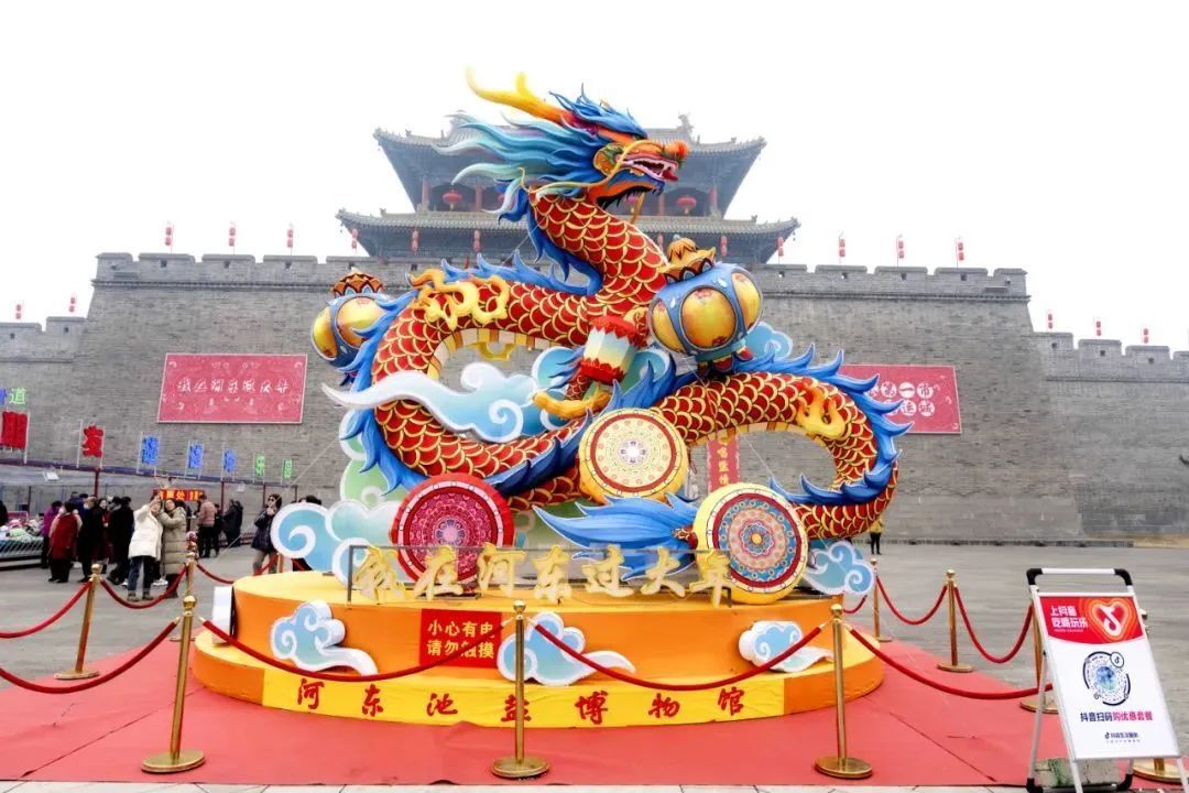 在運城,河?xùn)|池鹽文化博覽園的龍年燈會上游人如織,春節(jié)喜慶氛圍濃郁;