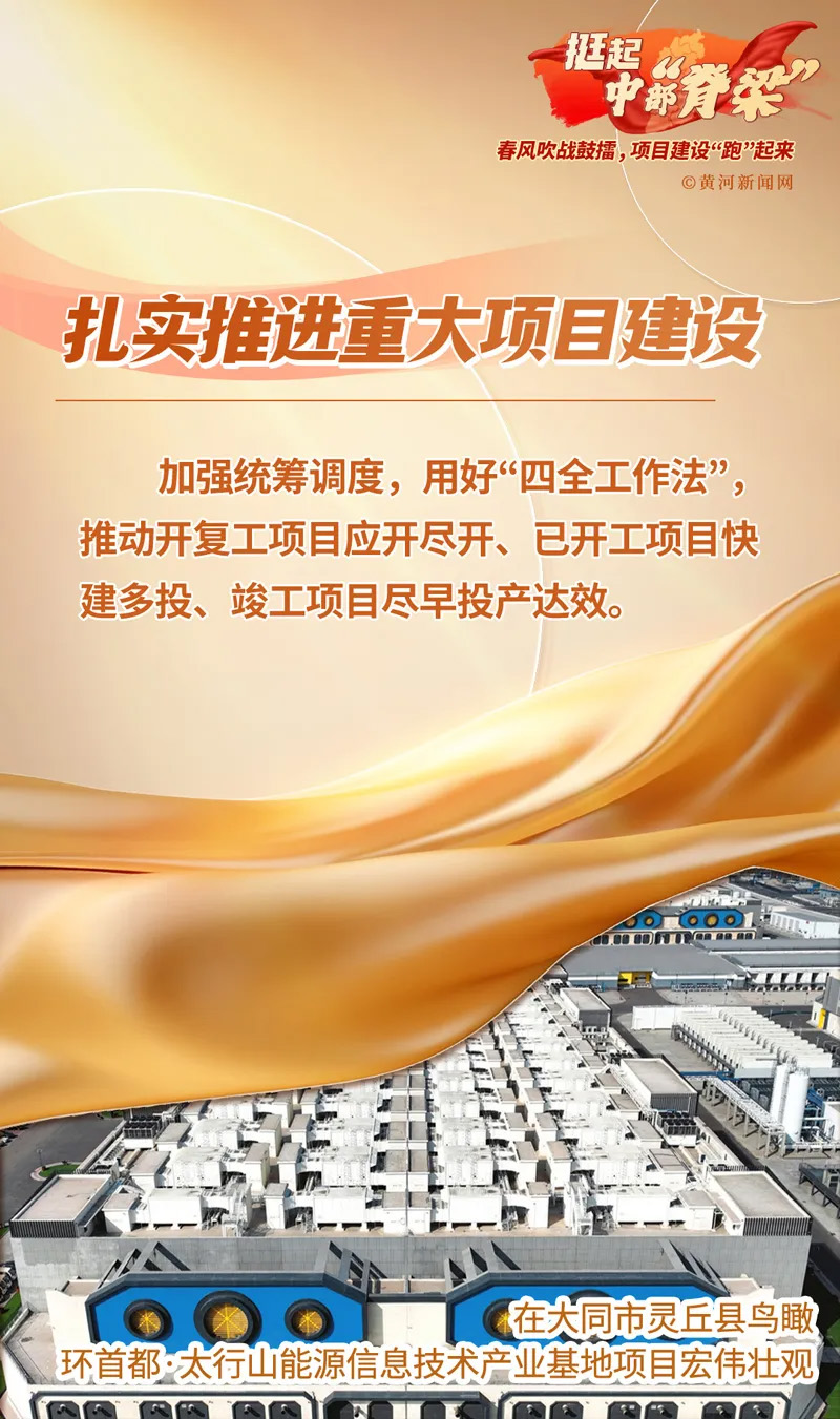 近日,全省重點工程項目調度會召開。會議強調,持續(xù)加快項目建設進度,擴大有效益的投資,進一步鞏固和增強經濟回升向好態(tài)勢。一組海報,看春天里的山西,項目建設戰(zhàn)正酣。