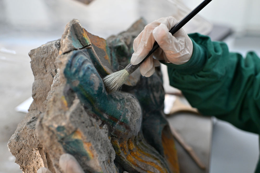 在云岡研究院可移動文物修復室,工作人員高嘉珩在進行瓷器修復(2024年2月26日攝)。