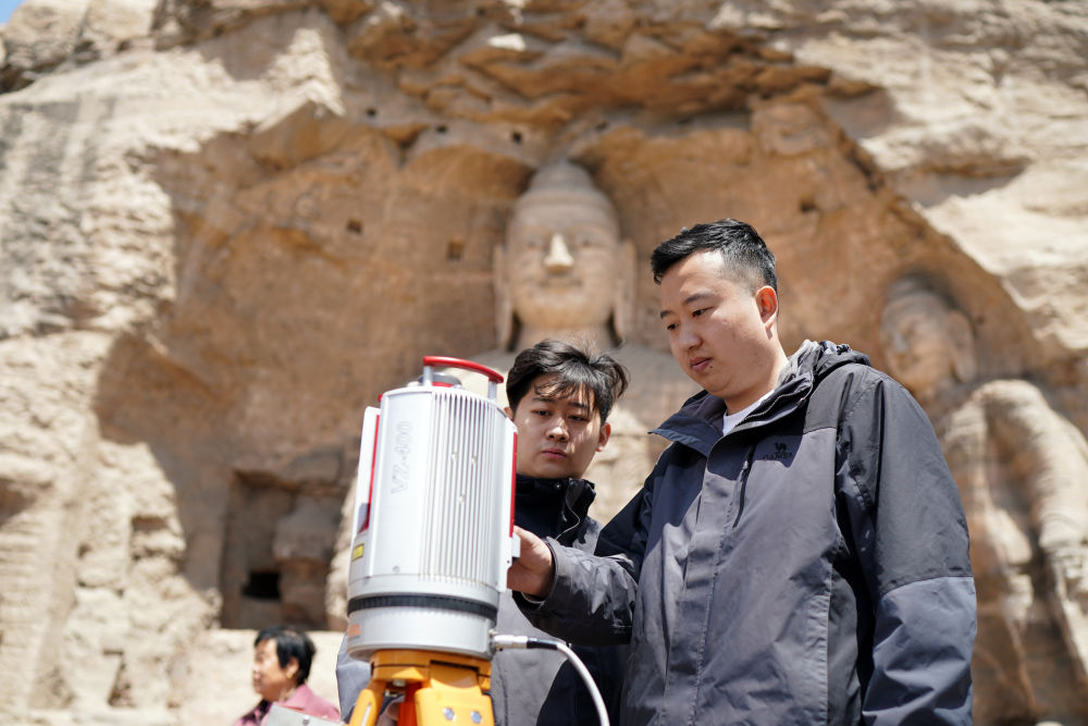 石質(zhì)文物修復、壁畫及泥塑彩繪保護修復、可移動文物修復、數(shù)字化技術采集……這些“文物醫(yī)生”扎根石窟,不斷加強云岡石窟本體保護。同時,為助力古老石窟“活起來”,這支由“80后”“90后”擔當主力的文保團隊全心投入,依托高精度測繪技術、三維激光掃描技術、計算機網(wǎng)絡技術等科技手段,對石窟的結構、色彩等信息進行采集,建起云岡石窟“數(shù)字檔案”,為石窟今后的保護、研究以及文化產(chǎn)業(yè)發(fā)展奠定基礎。