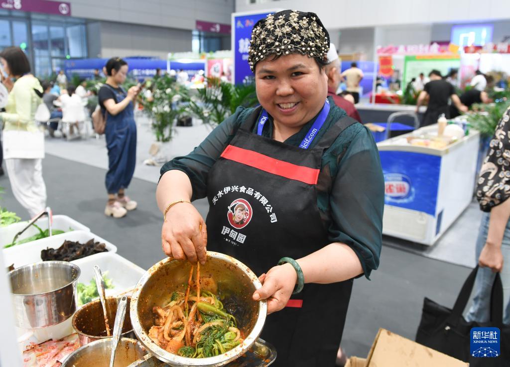 5月23日,來自甘肅天水的參展商在第二十屆文博會現場展示天水麻辣燙。(新華社記者 毛思倩 攝)