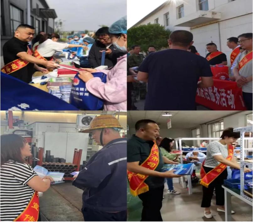 為創(chuàng)優(yōu)法治化營商環(huán)境,為企業(yè)提供精準(zhǔn)優(yōu)質(zhì)法治服務(wù),2024年6月4日至28日,忻州市司法行政系統(tǒng)組織開展“送法進企業(yè)”暨優(yōu)化營商環(huán)境專項法治服務(wù)活動。活動主題為“進企業(yè) 送法治 護營商”,市縣兩級法律服務(wù)團吸收優(yōu)秀律師、公證、鑒定、仲裁、調(diào)解等法律服務(wù)工作者,共同深入9縣12企,市司法局由黨組書記、局長王玫帶隊,開展專業(yè)鎮(zhèn)企業(yè)(7個)和雜糧企業(yè)(5個)專題法治服務(wù)。做到專業(yè)鎮(zhèn)和雜糧代表性企業(yè)全覆蓋,助力民營企業(yè)防范和化解法律風(fēng)險,提升企業(yè)經(jīng)營者和職工法律素養(yǎng),以法治之力護航民營企業(yè)高質(zhì)量發(fā)展。 一、開展法律宣講 法律服務(wù)團向企業(yè)管理人員及職工發(fā)放《憲法》500本、《民法典》以及《民法典進企業(yè)》10000本、《合同法》5000本、《山西省優(yōu)化營商環(huán)境條例》4000本、以及《行政復(fù)議法》400本和其他法律法規(guī)書籍;發(fā)放公證證明材料清單1000本、100份便民聯(lián)系卡和法律政策明白卡,毛巾300份、圍裙300份、水杯300個、筆記本300本、雨傘100把等法治宣傳用品。同時,講解法律案例,宣講涉企公證、鑒定和仲裁知識,將法治宣傳與企業(yè)日常生產(chǎn)、經(jīng)營管理以及員工生活聯(lián)系起來,為企業(yè)發(fā)展?fàn)I造良好法治環(huán)境。