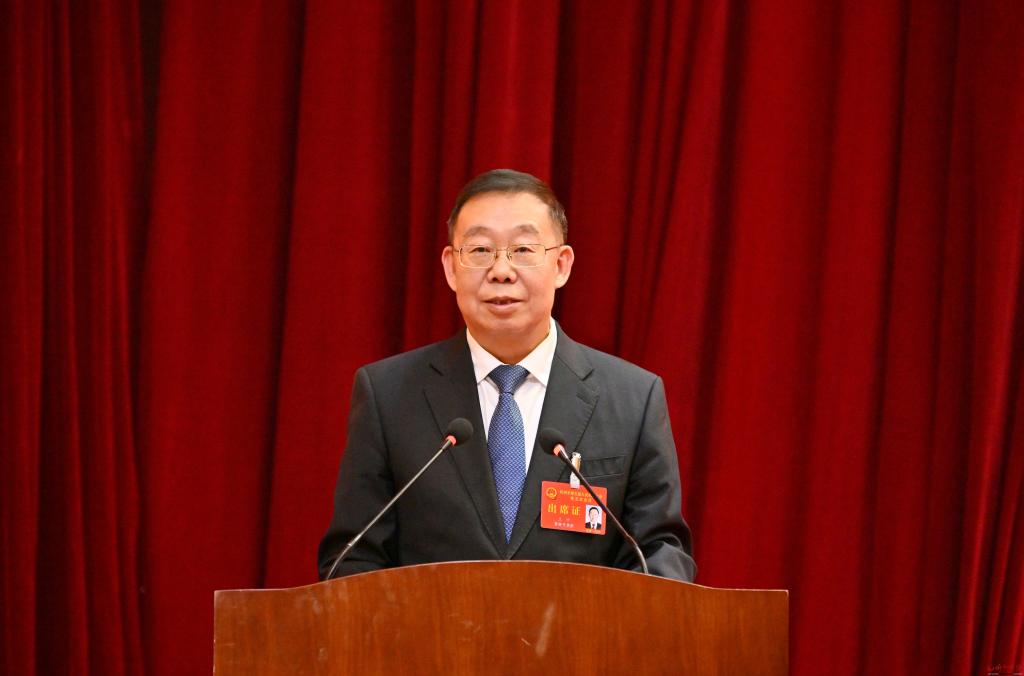 王珍向大會(huì)作市人大常委會(huì)工作報(bào)告。馮曉磊 攝