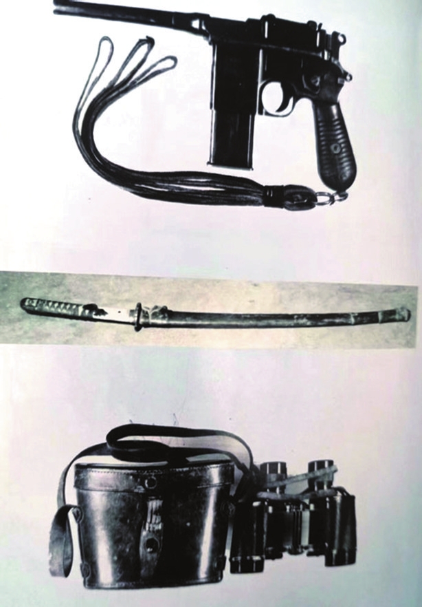 趙正午在與日寇和偽軍的戰(zhàn)斗中,使用最多的是三種武器,即手槍、大刀和望遠(yuǎn)鏡。手槍,該槍型于1895年經(jīng)改裝后由一次性裝10發(fā)子彈發(fā)射變成20發(fā)。這種槍管長(zhǎng)約140毫米,口徑7.63毫米。由于槍套是一個(gè)木盒,故又稱這種槍為“匣子槍”“盒子炮”,或“駁殼槍”。八路軍和游擊隊(duì)在抗戰(zhàn)時(shí)期廣泛使用。大刀,刀身采用鎳合金鋼材機(jī)械加工,刀身開(kāi)設(shè)血槽,刀柄大部分為木質(zhì),全長(zhǎng)101.8厘米??箲?zhàn)期間,日軍不少軍刀被我八路軍和游擊隊(duì)繳獲,成為我對(duì)敵作戰(zhàn)的武器之一。當(dāng)年,趙正午在戰(zhàn)斗中繳獲了一把這款軍刀。望遠(yuǎn)鏡,德國(guó)于1920年前后研制生產(chǎn)的一種兩筒軍用望遠(yuǎn)鏡,具有較高的放大倍數(shù)和物鏡直徑,適合遠(yuǎn)距離觀察和戰(zhàn)場(chǎng)偵察??箲?zhàn)初期流入我國(guó),該望遠(yuǎn)鏡長(zhǎng)16厘米,寬11厘米。忻口戰(zhàn)役后,忻縣游擊隊(duì)在戰(zhàn)場(chǎng)上繳獲。